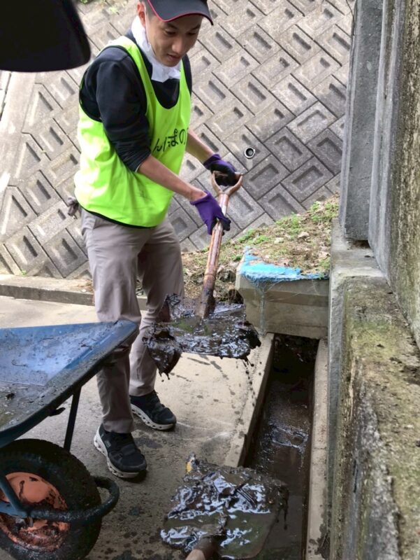 溝掃除をしています。